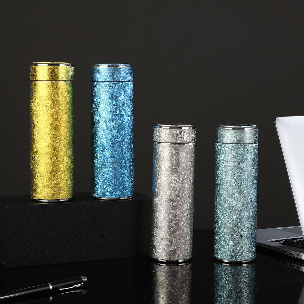Embrace the allure of nature with our selection of naturally derived colors, adding a personalized touch to your hydration experience. Available in blue, light blue, silver, and yellow, these hues are the result of titanium’s unique ability to change color at different temperatures – a true testament to the material’s versatility. Witness the transformation at 200°C to silver, 300°C to pale yellow, 400°C to golden, 500°C to blue, 600°C to purple, 800°C to gray-red, and at 1000°C to a striking green. This thermal coloring process ensures your water bottle is as unique as you are, without the need for artificial dyes.