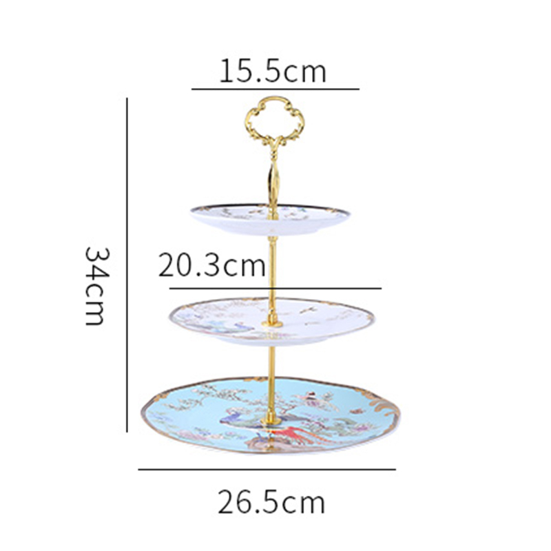 - Food Tray: Upper Layer Diameter 15.5 cm (6.10 inches), Middle Diameter 20.3 cm (7.99 inches), Bottom Diameter 26.5 cm (10.43 inches), Height 34 cm (13.39 inches)