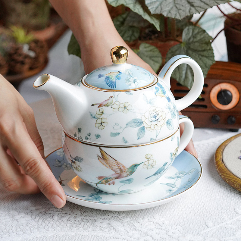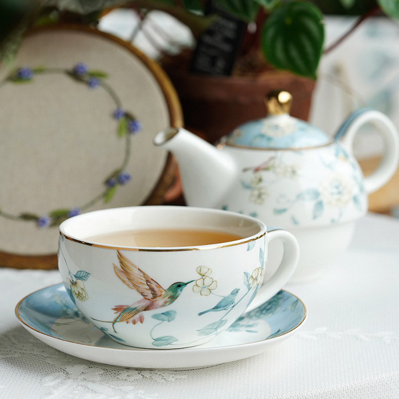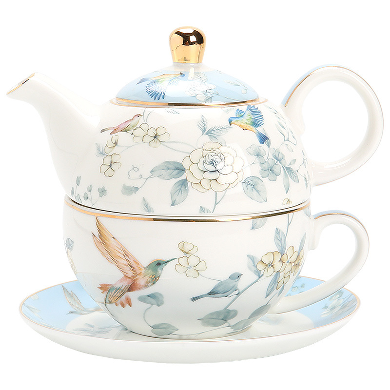 Discover the serene elegance of our Bird Floral Tea Set for One, a masterpiece crafted from high-quality porcelain. This exquisite set is adorned with a refreshing and natural bird and floral pattern, bringing the beauty of nature right to your tea time. The delicate gold trim adds a touch of luxury to the set, enhancing its sophisticated appeal. Perfect for those moments of peaceful reflection or as a charming addition to your afternoon tea, this set invites you to indulge in a tranquil tea experience, surrounded by the artful elegance of nature’s design.