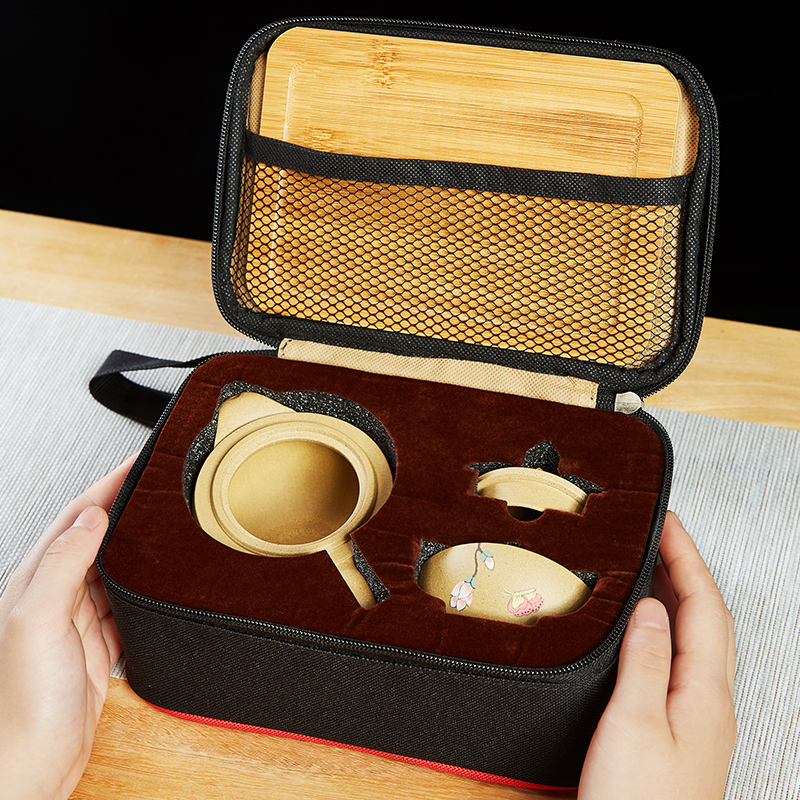 TSB16BB009 d2 Bird Flower Chinese Yixing Travel Tea Set for One TSB16BB009 d3 Bird Flower Chinese Yixing Travel Tea Set for One