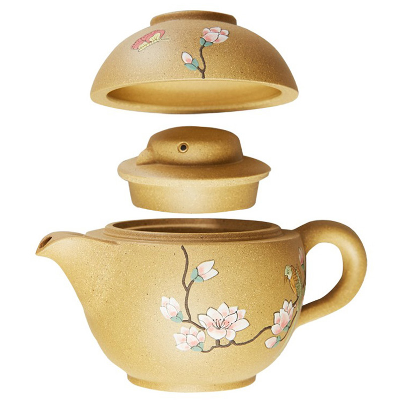 TSB16BB009 d4 Bird Flower Chinese Yixing Travel Tea Set for One TSB16BB009 d5 Bird Flower Chinese Yixing Travel Tea Set for One