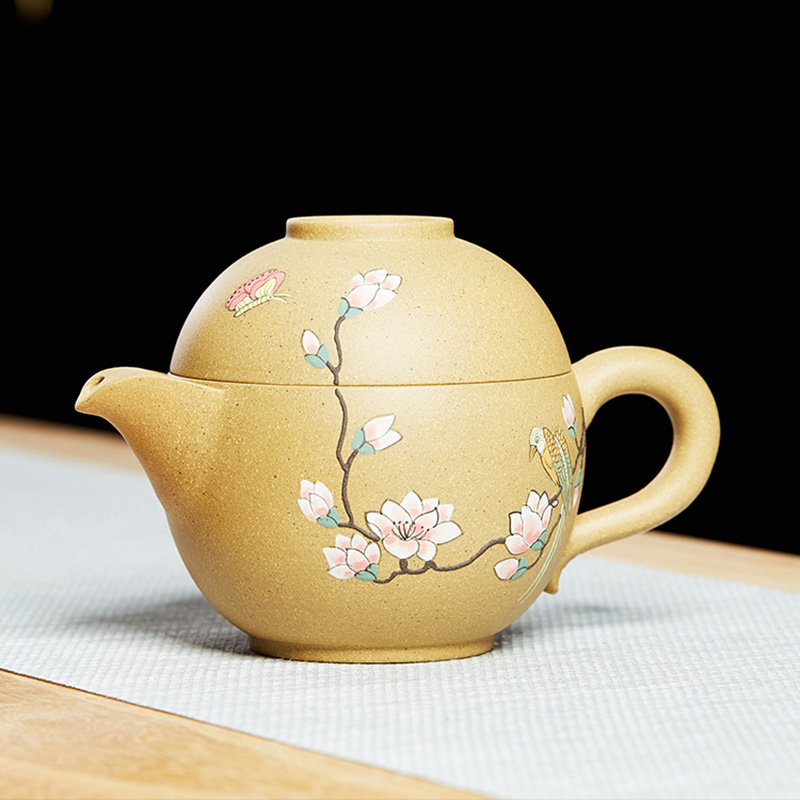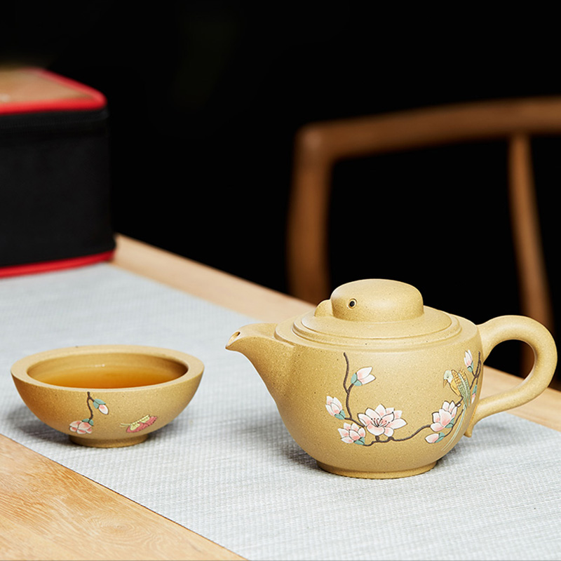 Bird Flower Chinese Yixing Travel Tea Set for One