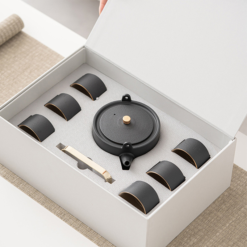 Step into luxury with our Black and Gold Japanese Tea Set, a stunning addition to your tea collection. This set boasts a pure black exterior adorned with gold accents, exuding opulence and sophistication. Complete with a Tilang pot and six ceramic teacups, each piece is meticulously designed to elevate your tea experience. Packaged in a premium gift box, this set is the epitome of elegance, making it the ultimate choice for Japanese tea enthusiasts and a delightful gift for any occasion. Elevate your tea rituals with the Black and Gold Japanese Tea Set – a fusion of style and substance.