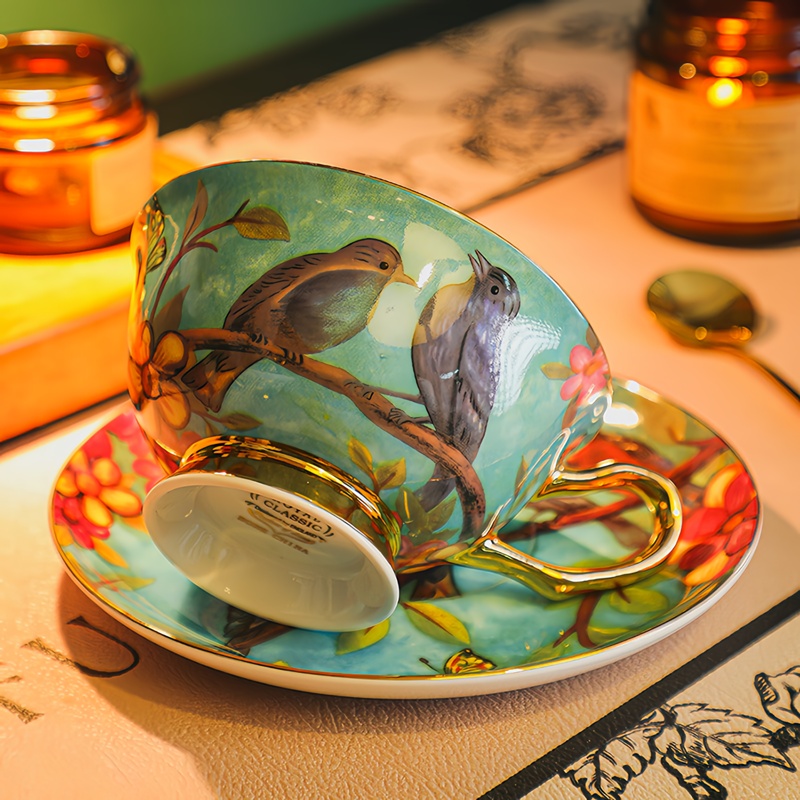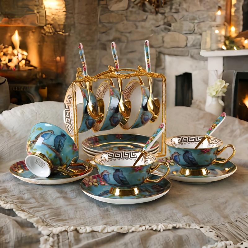 Indulge in a luxurious tea-drinking experience with our stunning blue-bird tea set. The tea set is adorned with a stunning blue bird pattern, featuring lifelike flowers and birds. The pattern is hand-painted with care and attention to detail, creating an exquisite and luxurious look.