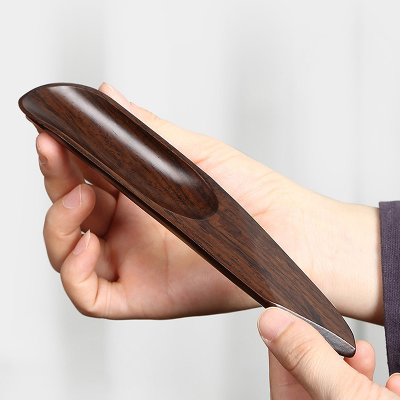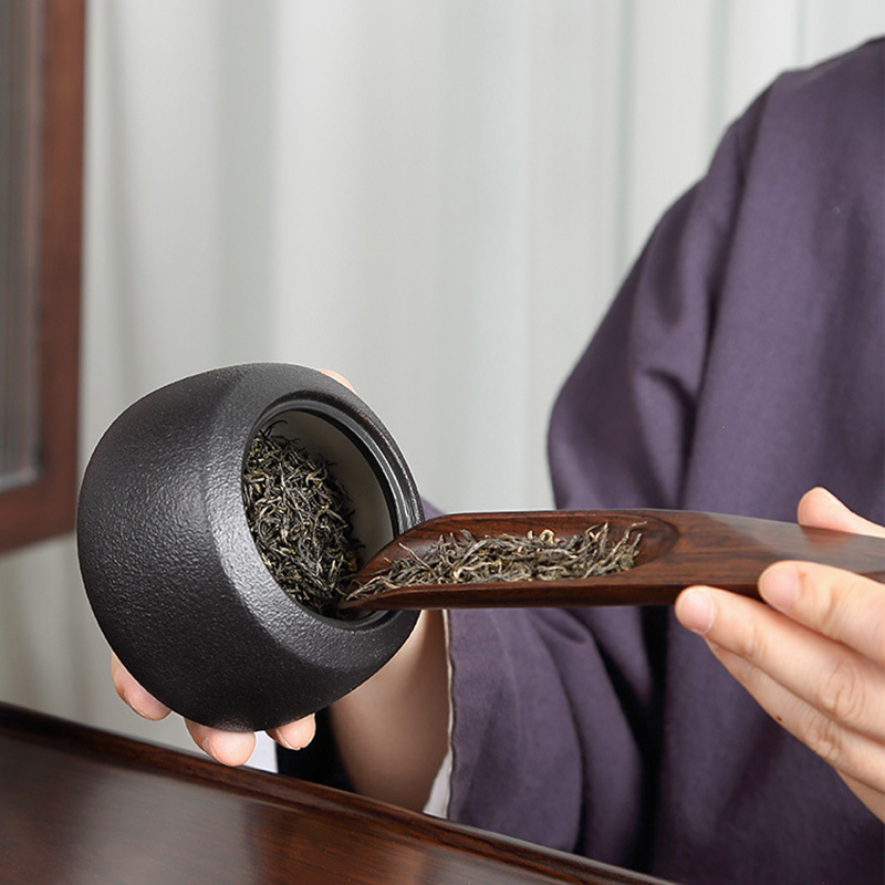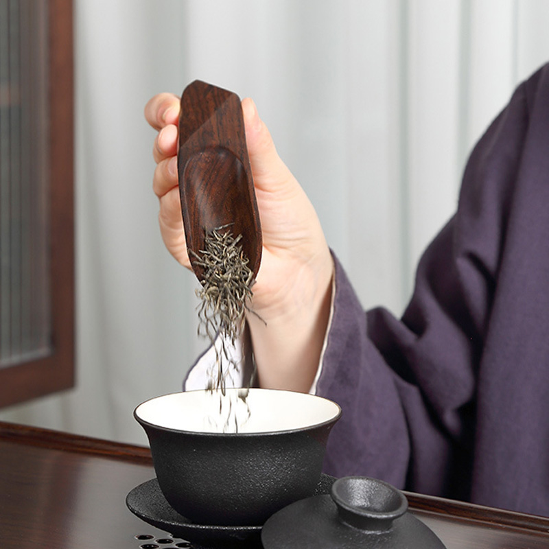 Elevate your tea ritual with our Cha He Wooden Tea Scoop. Crafted from exquisite black ebony wood, this household gongfu tea scoop is designed for scooping, measuring, and pouring tea leaves into your teapot or Gaiwan. Its deep ebony hue and intricate grain patterns exude timeless elegance. The unique, well-rounded shape ensures a comfortable grip, making it a pleasure.