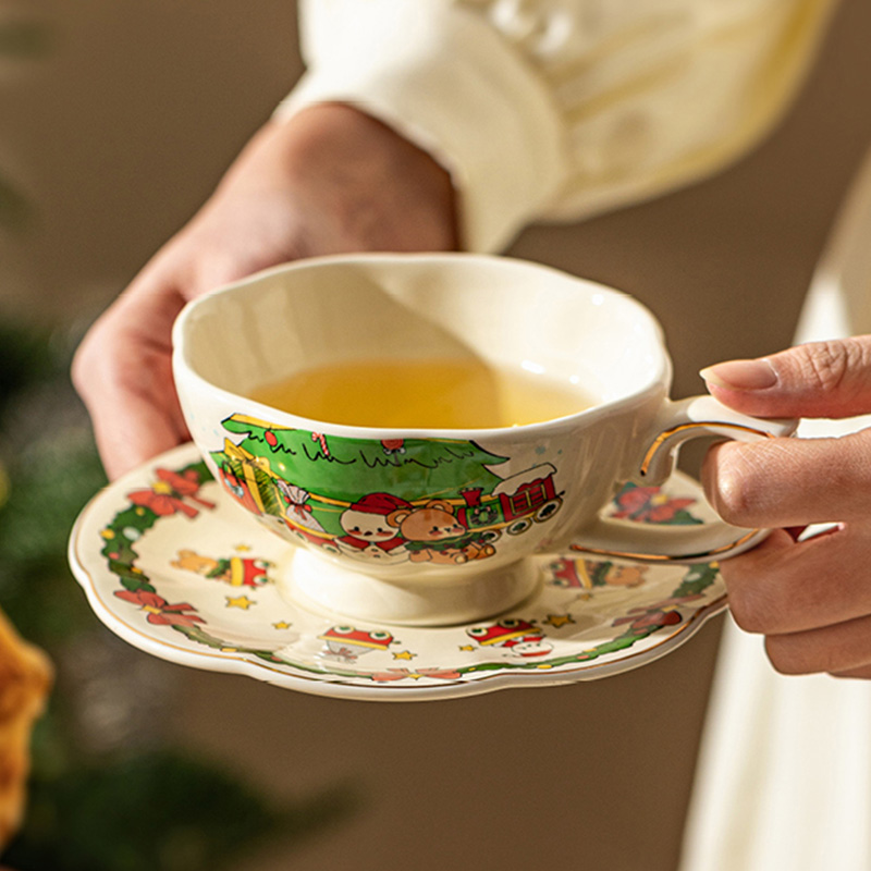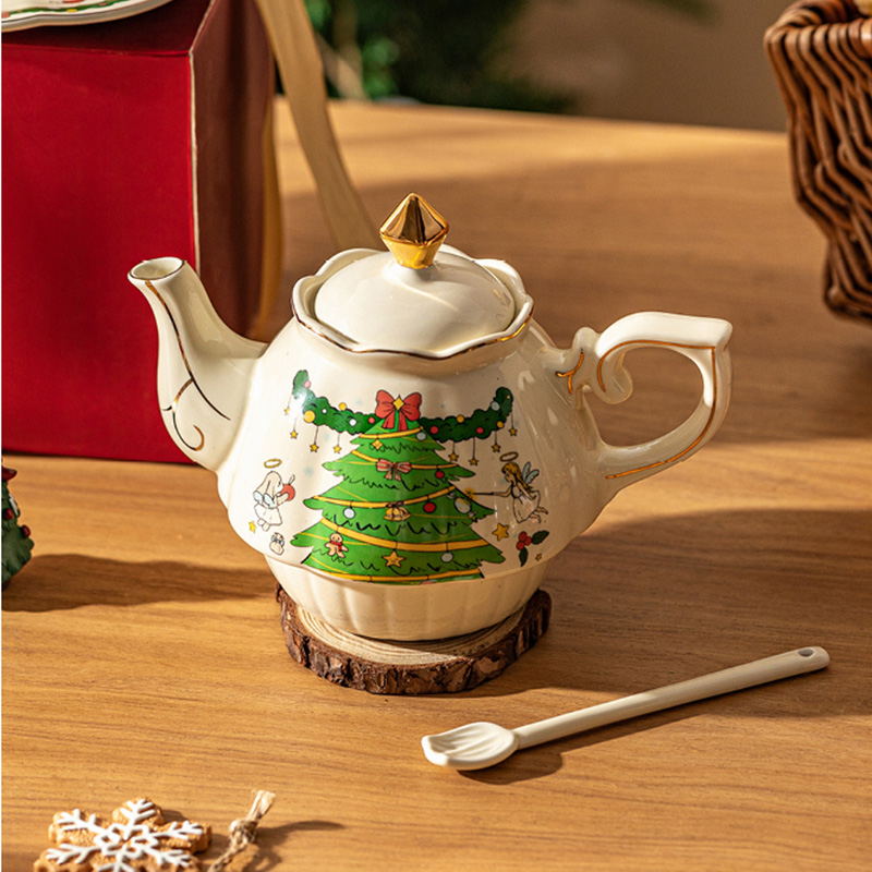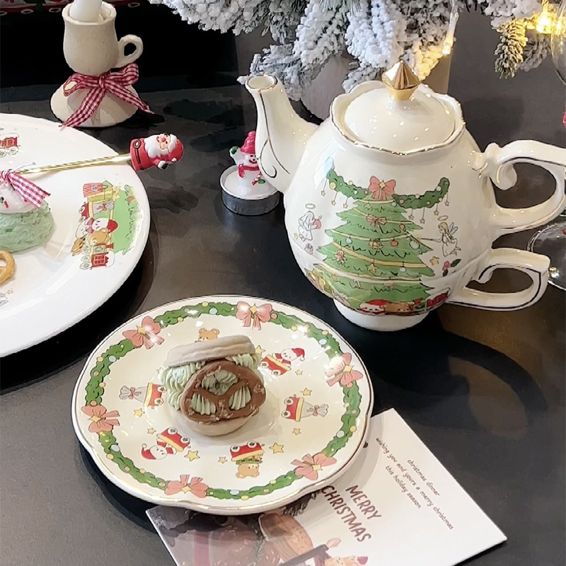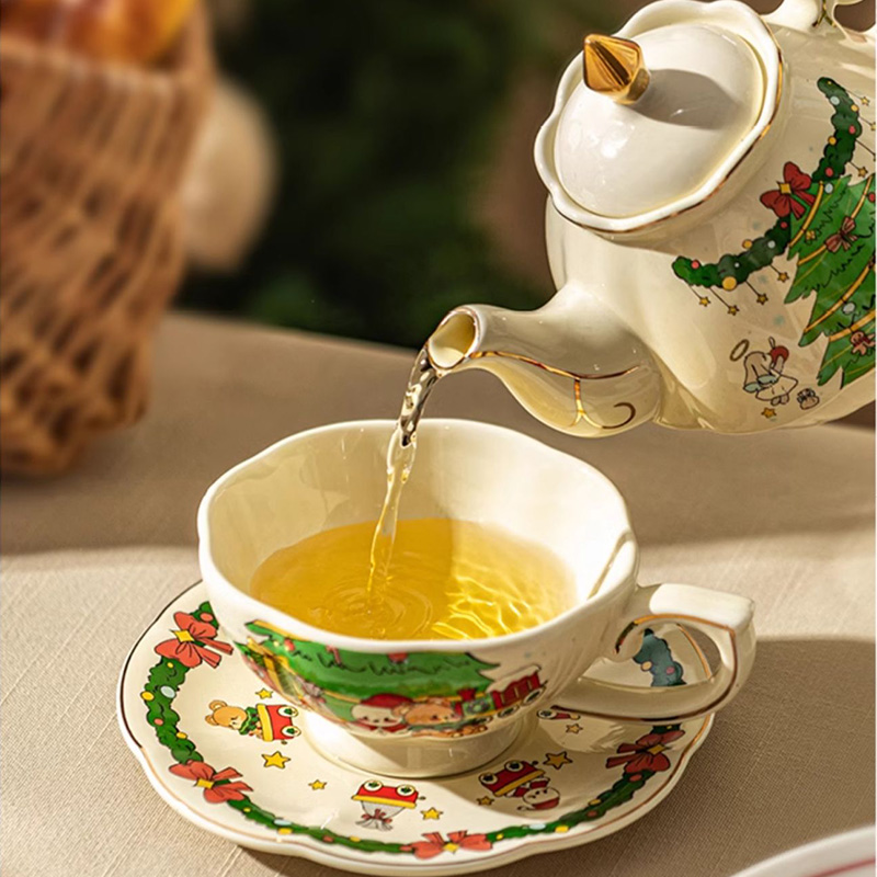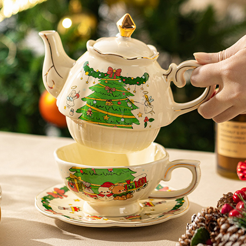 Adorned with a playful cartoon Christmas tree pattern, this tea set is a testament to the merry spirit of the holidays. The teapot, cup, and saucer are beautifully crafted, with each piece featuring an enchanting Christmas design that adds a touch of whimsy and beauty to your tea experience. With its generous capacity of over 20 oz, the teapot ensures you can savor your favorite brews in ample measure. This set is not just about functionality; it’s a piece of holiday art that brings the joy and color of Christmas to your table, making every tea time a festive occasion.