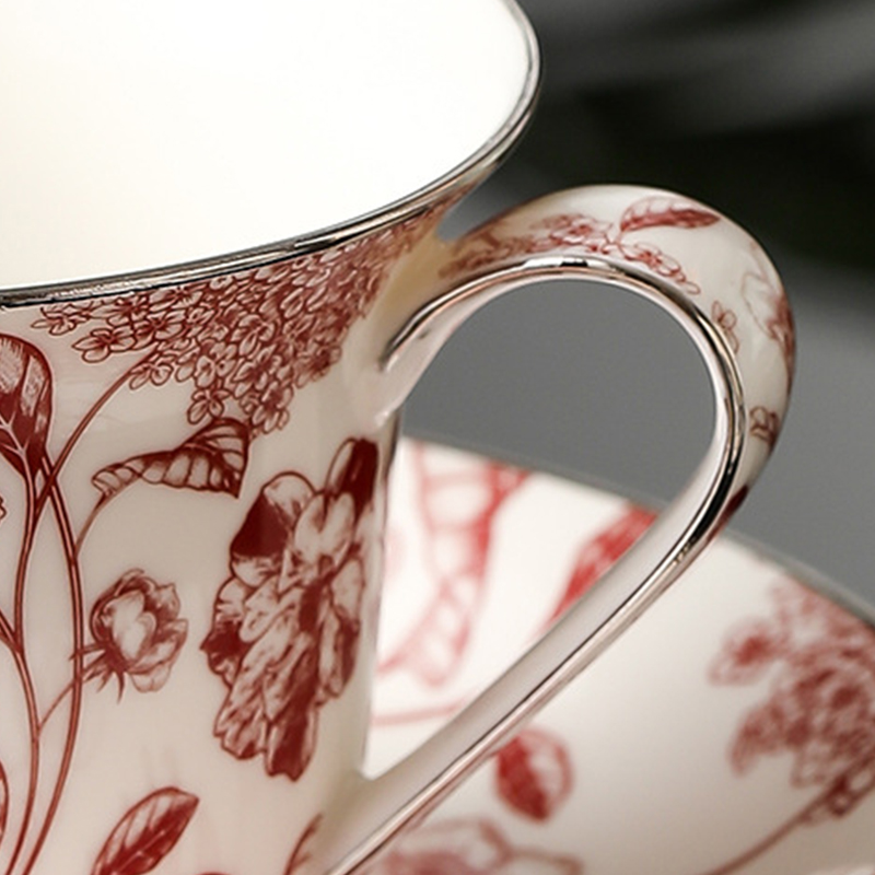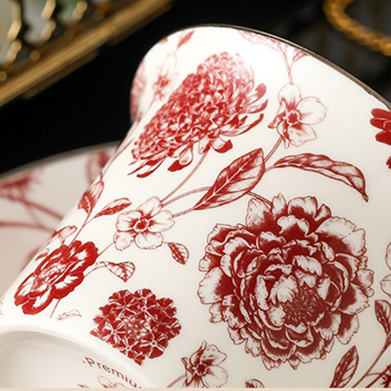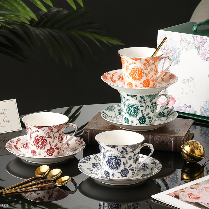 Elevate your tea time with our Classic Athenian Rose Cup and Saucer Porcelain set. Inspired by the vintage charm of rural gardens, this collection features intricate Ruzi print designs, capturing the essence of classic Athenian roses. Handcrafted with care, these porcelain pieces are adorned with health-conscious high-temperature decals, accented with meticulous hand-painted gold detailing. Available in four charming color variations – blue, green, orange, and red – these thick and delicate porcelain pieces are perfect for enhancing your tea-drinking experience. The smooth handle design ensures a comfortable grip, making every sip a delight.