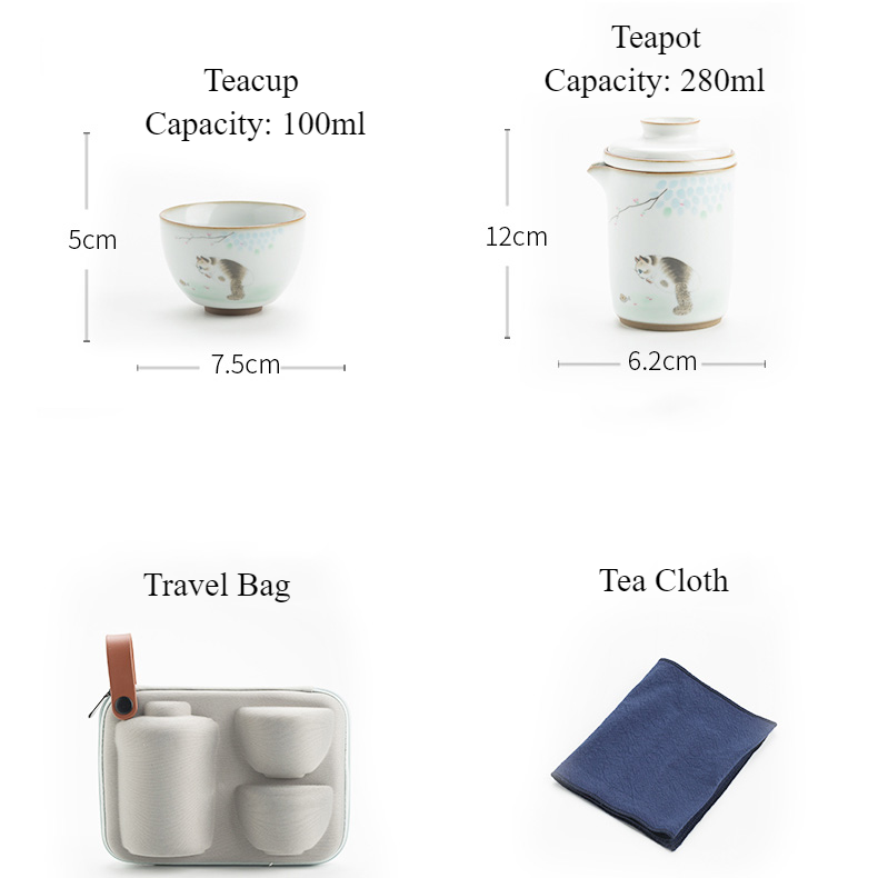 Embrace the charm of each season with our Cute Cat Chinese Gaiwan Gongfu Tea Set, featuring five delightful cat patterns: spring cat, summer cat, autumn cat, winter cat, and couple lovers cat. Each piece is intricately designed to showcase the unique characteristics of the seasons, from the playful spring cats to the serene winter cats. This exquisite tea set includes a teapot, two cups, and a travel bag, making it ideal for tea lovers on the go. Crafted from high-quality ceramic, this durable set ensures you can enjoy your favorite brews anywhere, even on planes. It’s the perfect gift for cat enthusiasts, tea aficionados, and travel lovers alike. Don’t miss out on this sleek, lightweight, and beautifully detailed tea set—order yours today!