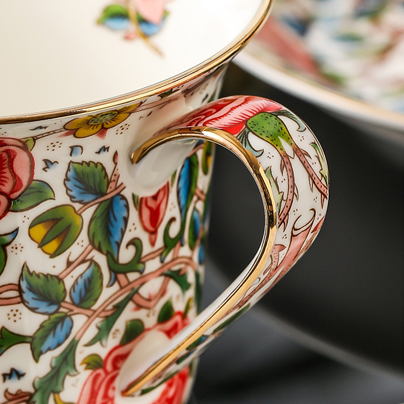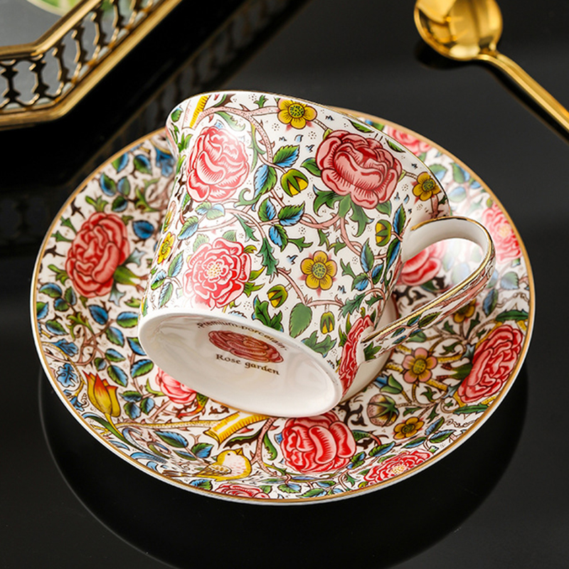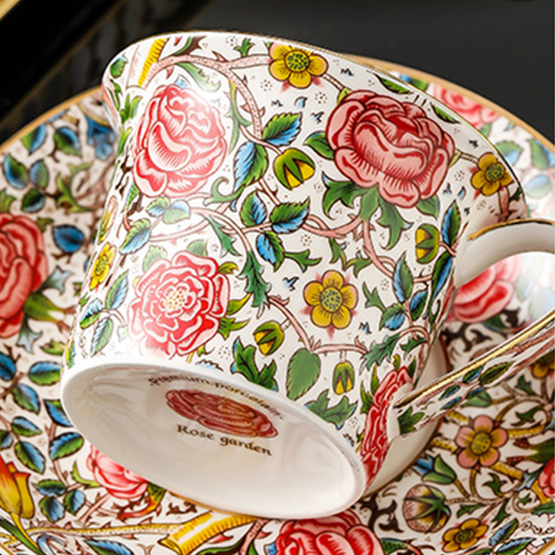 Elevate your tea or coffee time with our Exquisite Rose Porcelain Cup and Saucer. Available in two luxurious styles – delicate roses and abundant fruit. Crafted using a healthy ceramic decal process, each piece is meticulously hand-painted with 24K gold accents. Fired at high temperatures for durability, this set boasts substantial porcelain quality that’s also effortless to clean.