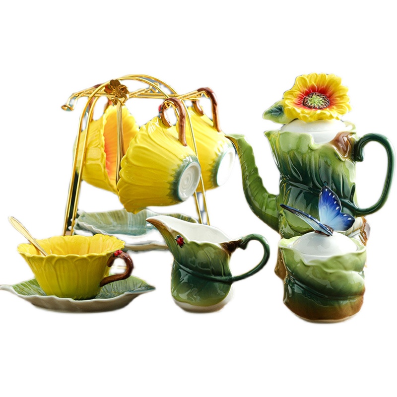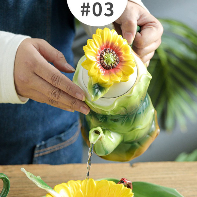 Dive into a world of blooming beauty with our Floral Enamel English Tea Set, offering three enchanting styles: Pink Clivia, Red Fuchsias, and Yellow Sunflower. Each set is a masterpiece of realism and beauty, allowing you to choose the perfect botanical companion for your tea moments. Whether it’s the romantic allure of Pink Clivia, the vibrant energy of Red Fuchsias, or the sunshine-infused Yellow Sunflower, each style enhances the visual appeal of your tea set. Select your favorite bloom and let your tea experience blossom with authenticity and charm. Elevate your surroundings with the lifelike beauty of these floral designs and make every sip a moment of aesthetic delight. Choose your bloom and embrace the enchantment.