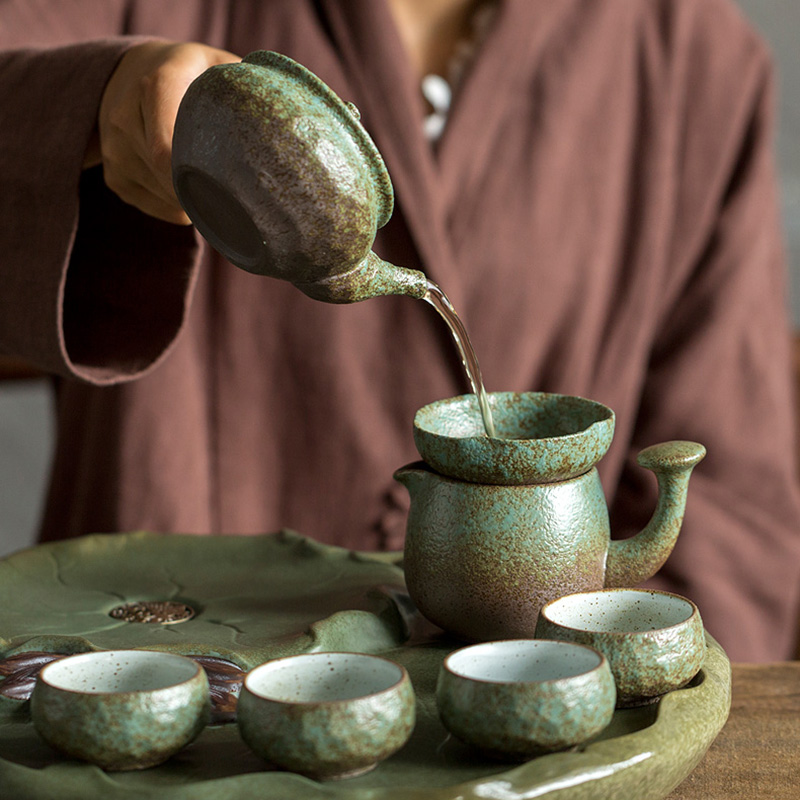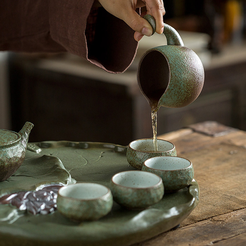 Elevate Your Tea Ritual: Lotus Japanese Gongfu Tea Set Rough Pottery