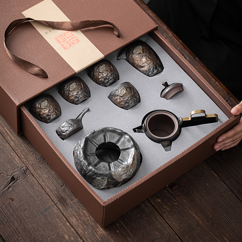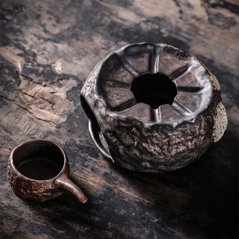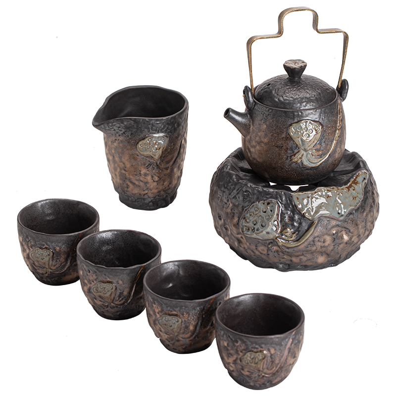 Immerse yourself in the harmonious beauty of the Lotus Pottery Japanese Tea Set with Warmer. This set is a testament to understated elegance, featuring a gold-tinged iron glaze that imparts a subtle radiance to its gleaming surface. Fired at an intense 1310 degrees Celsius, it encapsulates the purity and simplicity inherent in the Japanese tea tradition. The exquisite lotus seed pattern adorning each piece reflects the beauty of elegance and tranquility. With its adroit spout and integrated filter, this tea set provides a complete and seamless tea service for four. Elevate your tea rituals with the precise spout design that ensures smooth and accurate pouring. The set comes complete with a complementary tea warmer – a matching candle holder designed to maintain the ideal tea temperature. Bring home the Lotus Pottery Japanese Tea Set with Warmer and embark on a journey of refined tea enjoyment. Act now to immerse yourself in the artful serenity of this exceptional tea set.