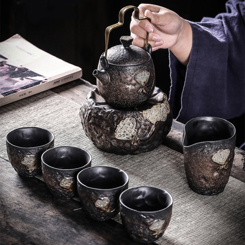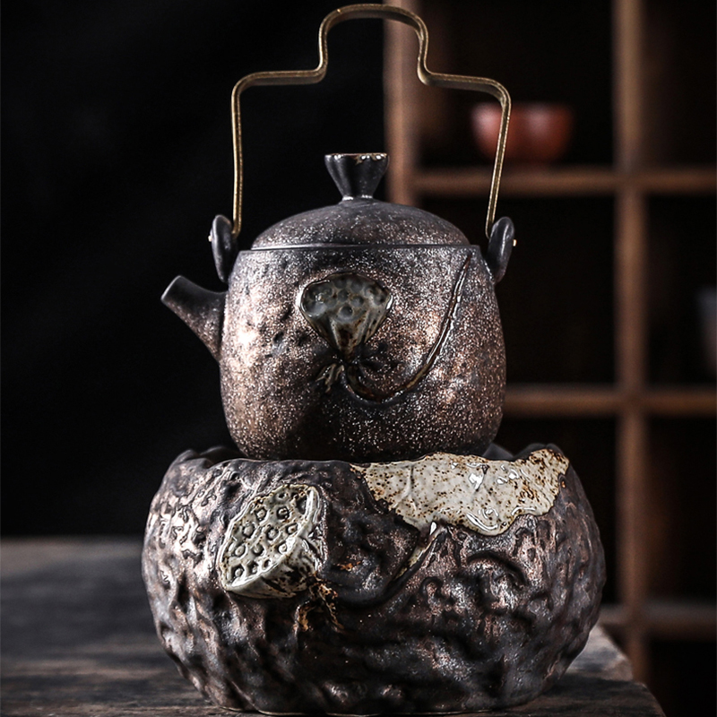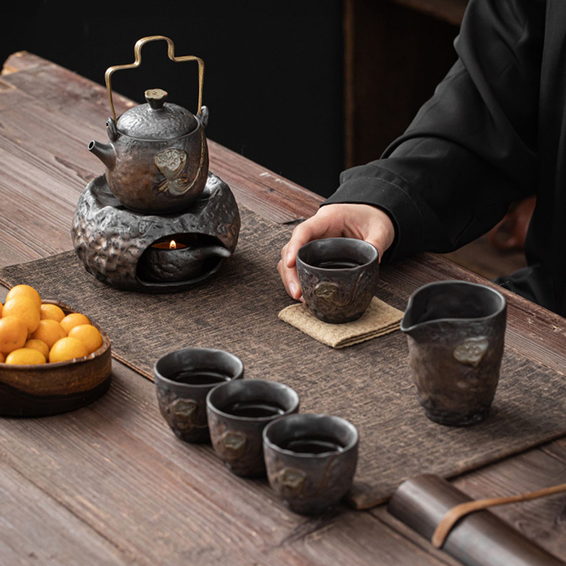 Tranquil Elegance: Lotus Pottery Japanese Tea Set with Warmer