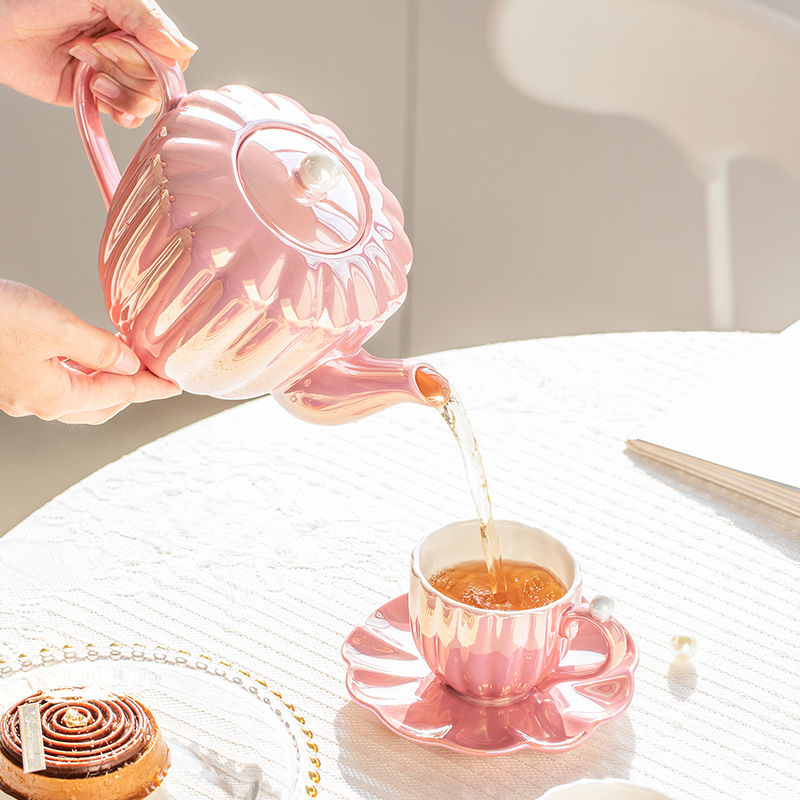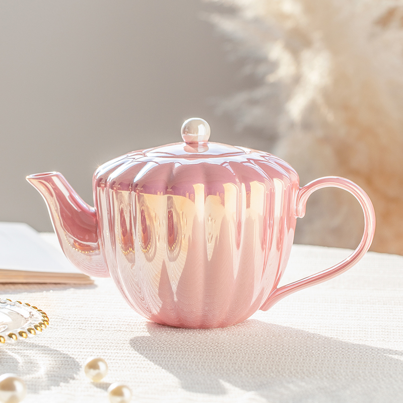 Focusing on the teapot, the heart of this set, it shines brightly with a pearl-like sheen that captivates the eye, enhanced by a pearl-shaped knob atop the lid for a cohesive theme. With a generous capacity of 1000ml (approximately 34 oz), it is perfectly sized to serve up to four individuals, making it an excellent choice for small gatherings. This teapot not only serves your favorite teas but does so with a statement of luxury and modern sophistication, making every tea session a memorable experience.