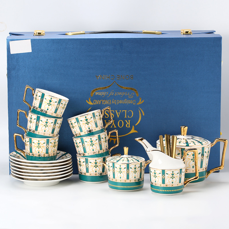 Indulge in the art of tea with our exquisite Time English Afternoon Tea Set, a captivating ensemble that invites you to savor the unhurried moments. The overarching theme of “Time” permeates the design, evoking a sense of leisure and tranquility for a delightful breakfast or afternoon tea experience. Crafted with precision and care, this full English afternoon tea set boasts intricate patterns that gently whisper the passage of time. The combination of quality bone china ensures a delicate yet enduring composition, featuring a coffee pot, a milk jug, a sugar bowl, and six cup and saucer sets. Step into a world where tea becomes a celebration of elegance and timelessness.