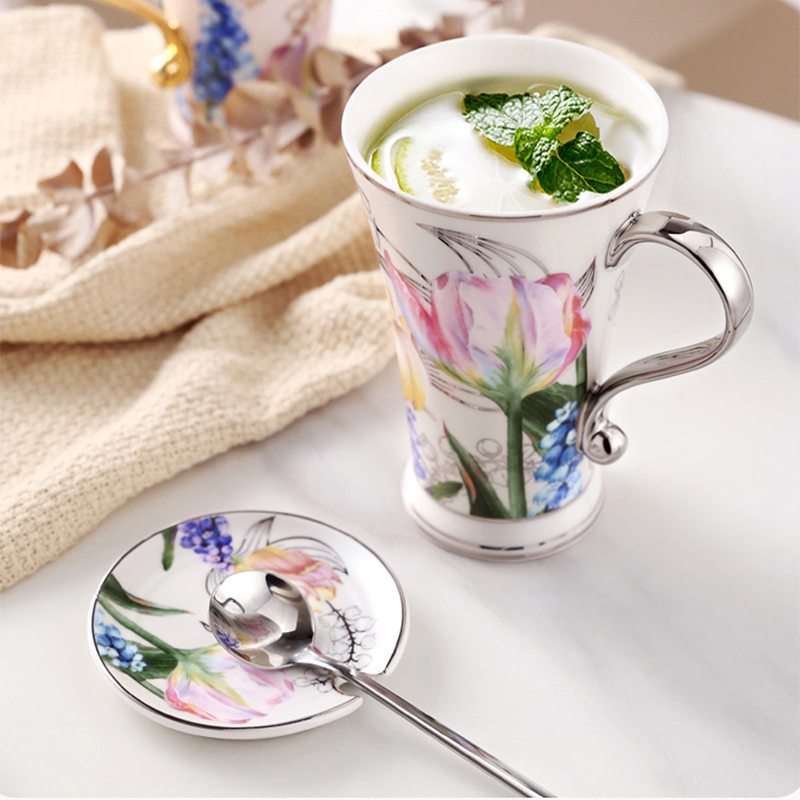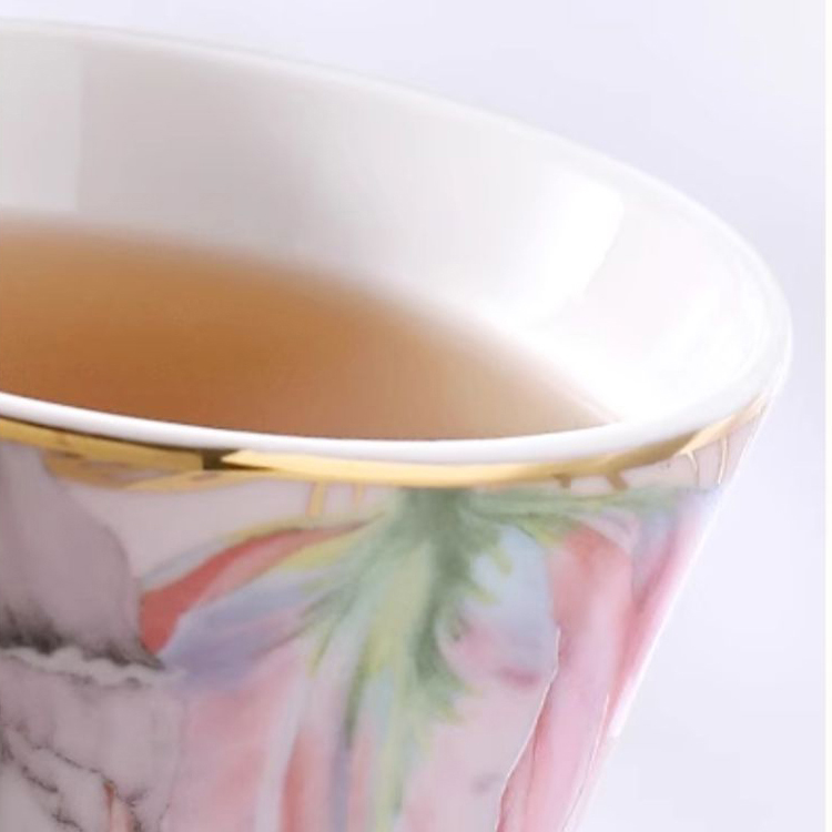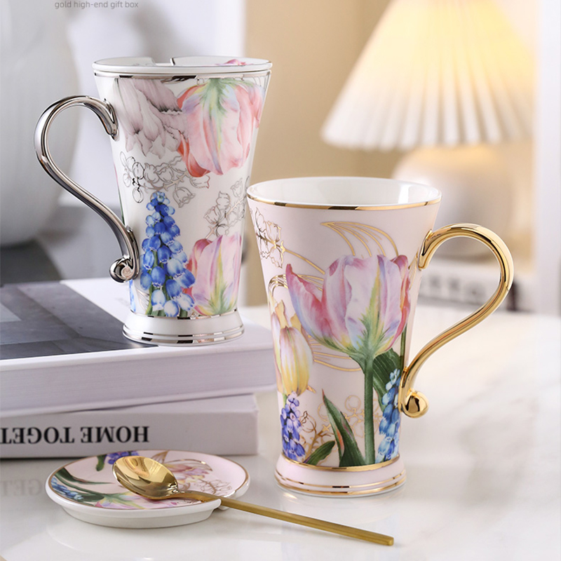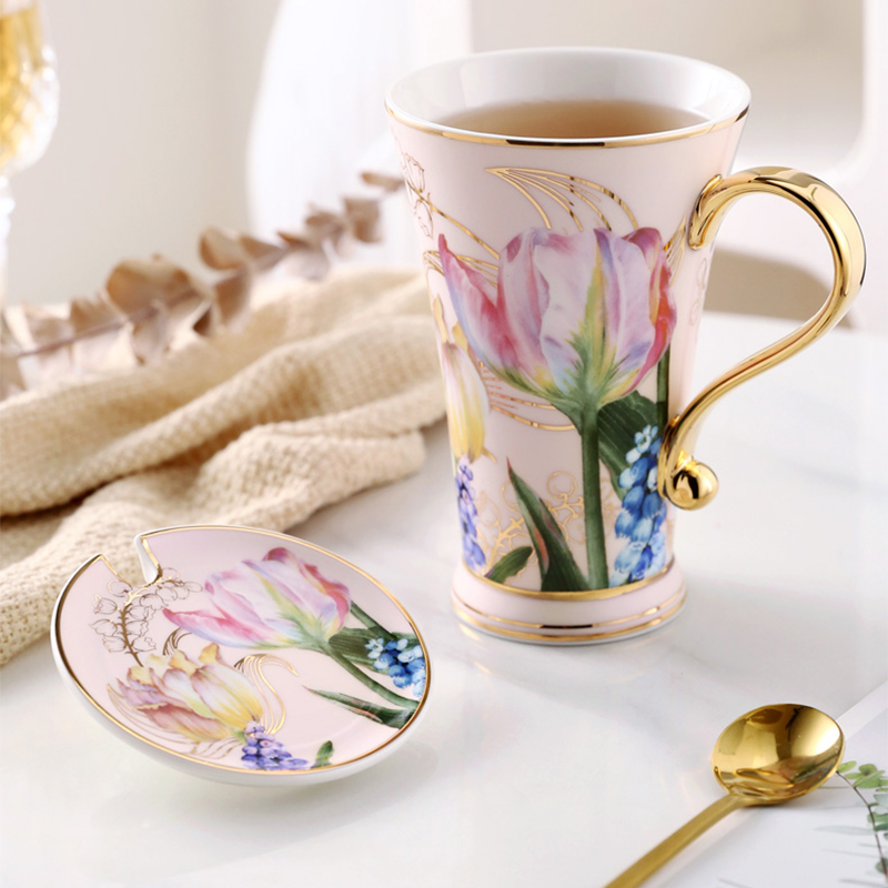 Indulge in the timeless beauty of the Tulip Porcelain Mug with Lid. Its delicate tulip and lily-of-the-valley pattern adds an exquisite touch to your daily tea or coffee ritual. This high-footed ceramic mug is crafted with the utmost precision, showcasing fine porcelain that’s as smooth as silk. The meticulous hand-painted gold detailing adds a touch of elegance, making each sip an experience in luxury. Moreover, it’s reassuring to know that this mug is free from lead, chromium, and heavy metals, ensuring your health and well-being are a top priority.