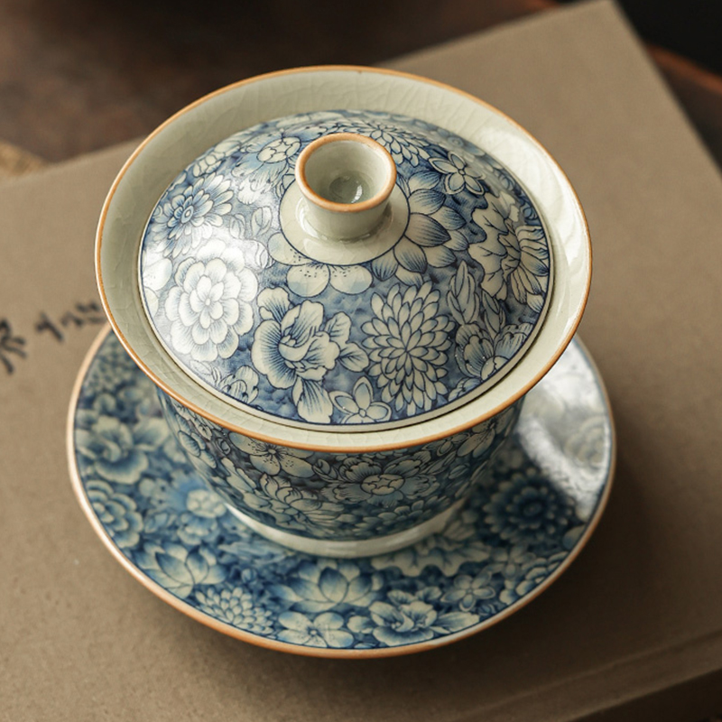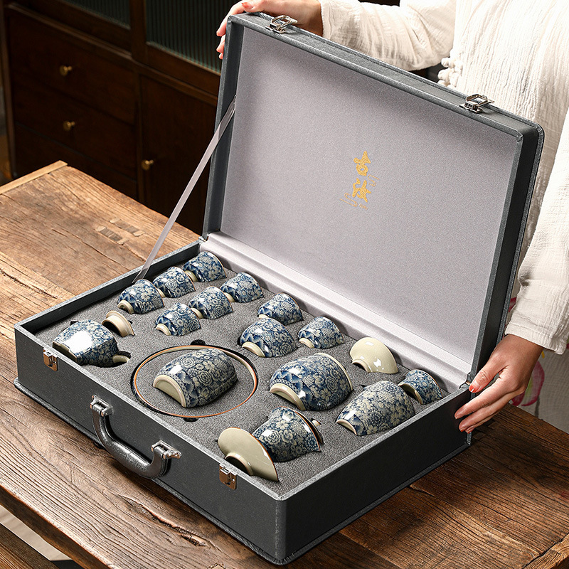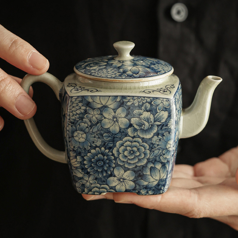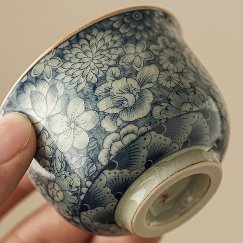 Transport yourself to a bygone era with our Vintage Chinese Gongfu Tea Set, a delicate and classical masterpiece that embodies the timeless charm of blue and white porcelain. The main color palette, featuring classic blue-and-white hues, sets the stage for intricate floral patterns. Each delicate bloom brings a sense of freshness and natural beauty to this traditional tea set, creating an ambiance of elegance. Crafted with precision from high-quality porcelain and fired at high temperatures, this set boasts durability and a colorfastness that withstands the test of time. As the days pass, the exterior develops exquisite ice-crackle textures, adding a layer of timeless beauty. Presented in a luxurious gift box, this Vintage Gongfu Tea Set is not just a tea companion but a perfect gift to share the joy of traditional tea rituals.