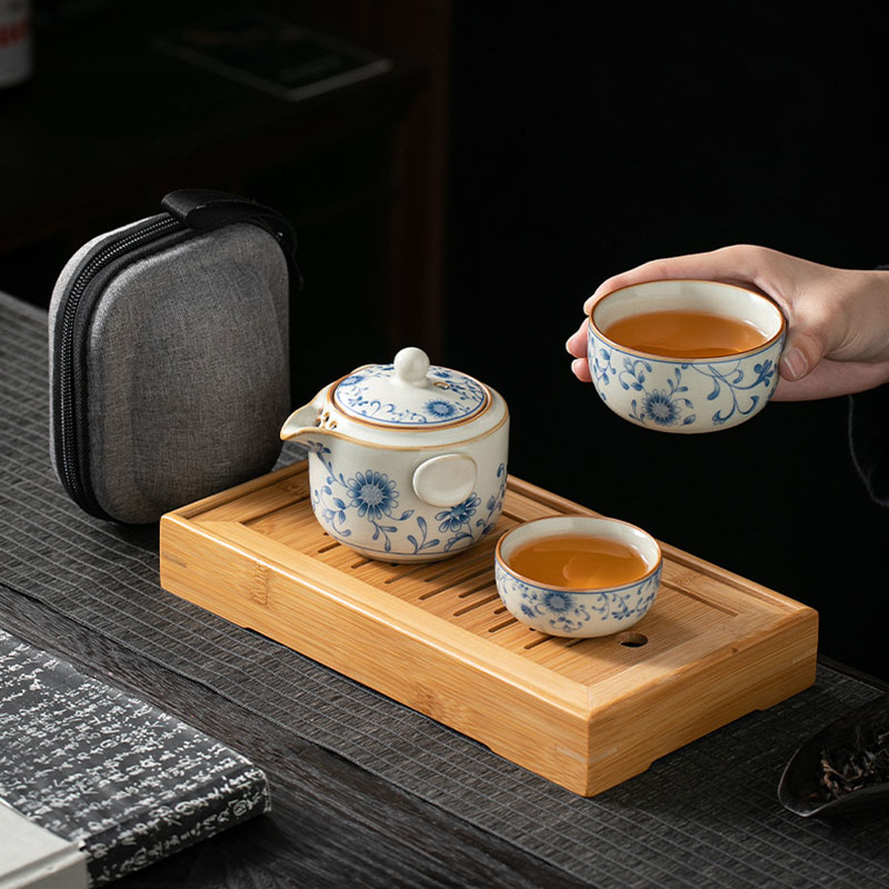 Elevate your tea experience on the go with our Vintage Chinese Travel Tea Set Blue and White. Featuring classic blue and white porcelain patterns and a sturdy carrying case, this set beautifully blends traditional artistry with modern convenience.