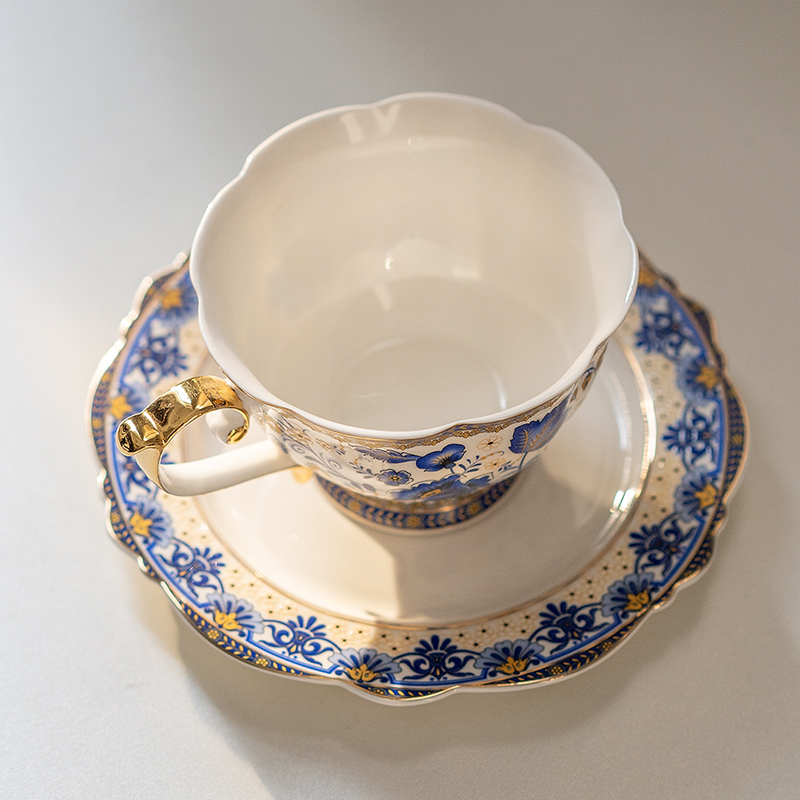 Elevate Your Tea Experience with our Vintage Tea Cup and Saucer Set in Porcelain Blue White