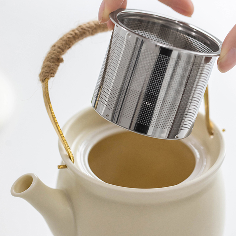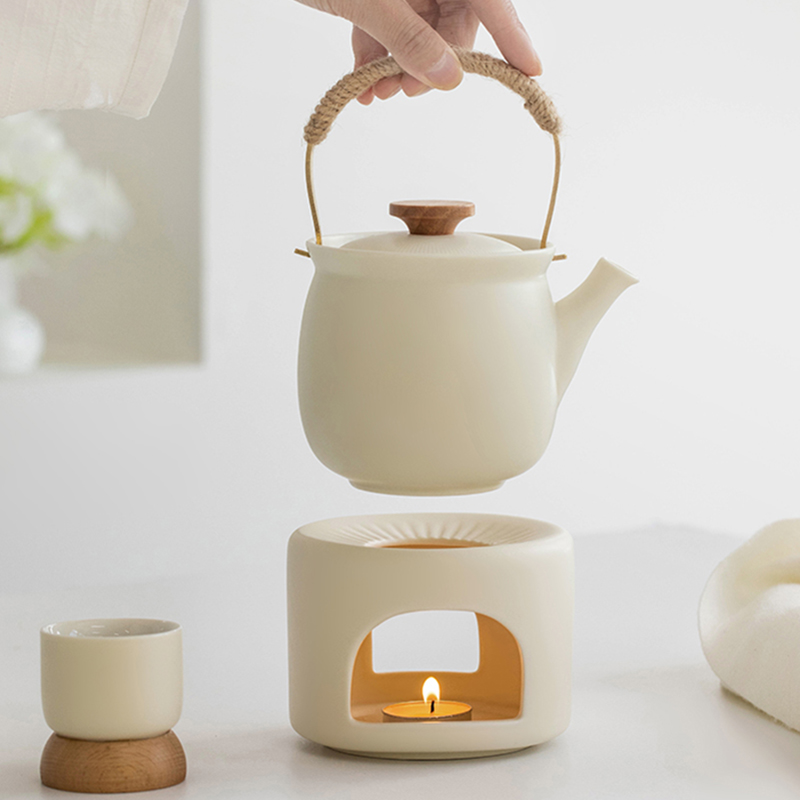 Bid farewell to stray tea leaves with the teapot’s integrated filter, simplifying the brewing of your favorite loose-leaf teas. The teapot’s handle is gracefully enveloped in heat-resistant hemp rope, providing both rustic charm and a comfortable grip, even when your tea is steaming hot. The tea warmer has a minimalist design with a level surface, effortlessly maintaining your tea at the perfect temperature.