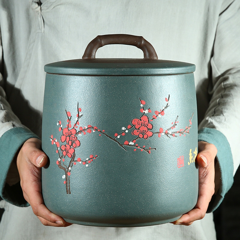 - This is a gorgeous purple clay tea caddy with stunning craftsmanship.