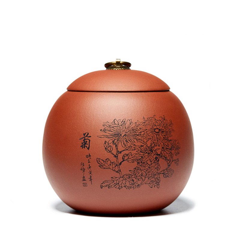 Experience the true taste of your favourite loose tea with our Yixing tea caddy. Made from authentic purple clay, this tea tin is perfect for preserving the natural essence of tea and retaining its aroma for a longer time. The plum, orchid, bamboo, and chrysanthemum design on the surface reflects Chinese culture and adds a touch of elegance to your tea-drinking experience.